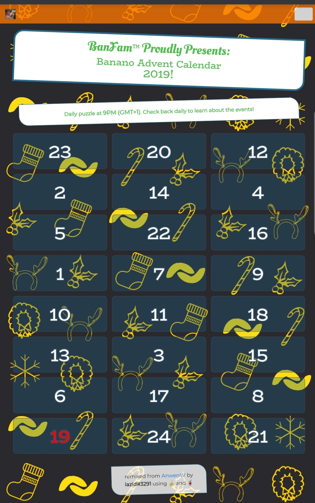 The mobile version of the advent calendar shows the word order: