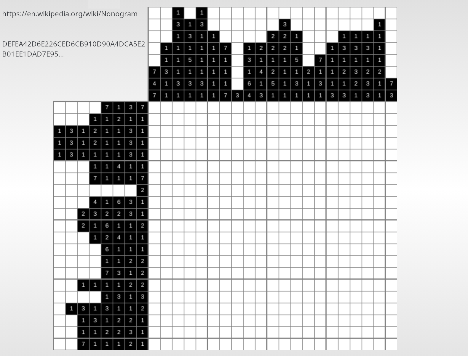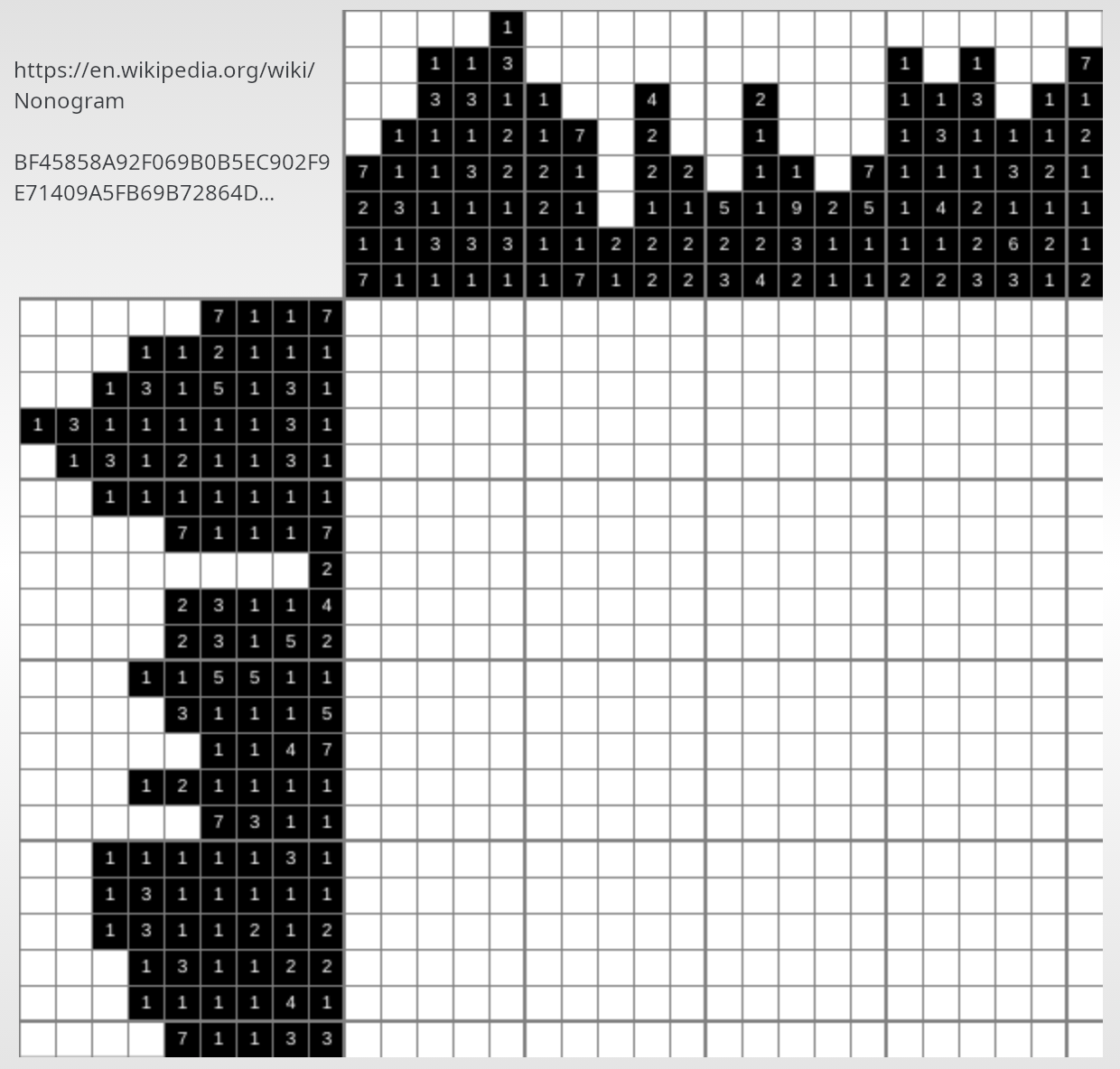 You erased your private key QR code! Thankfully, you put hints on the number of black pixels for each row and column. Surely you can find it back, right?